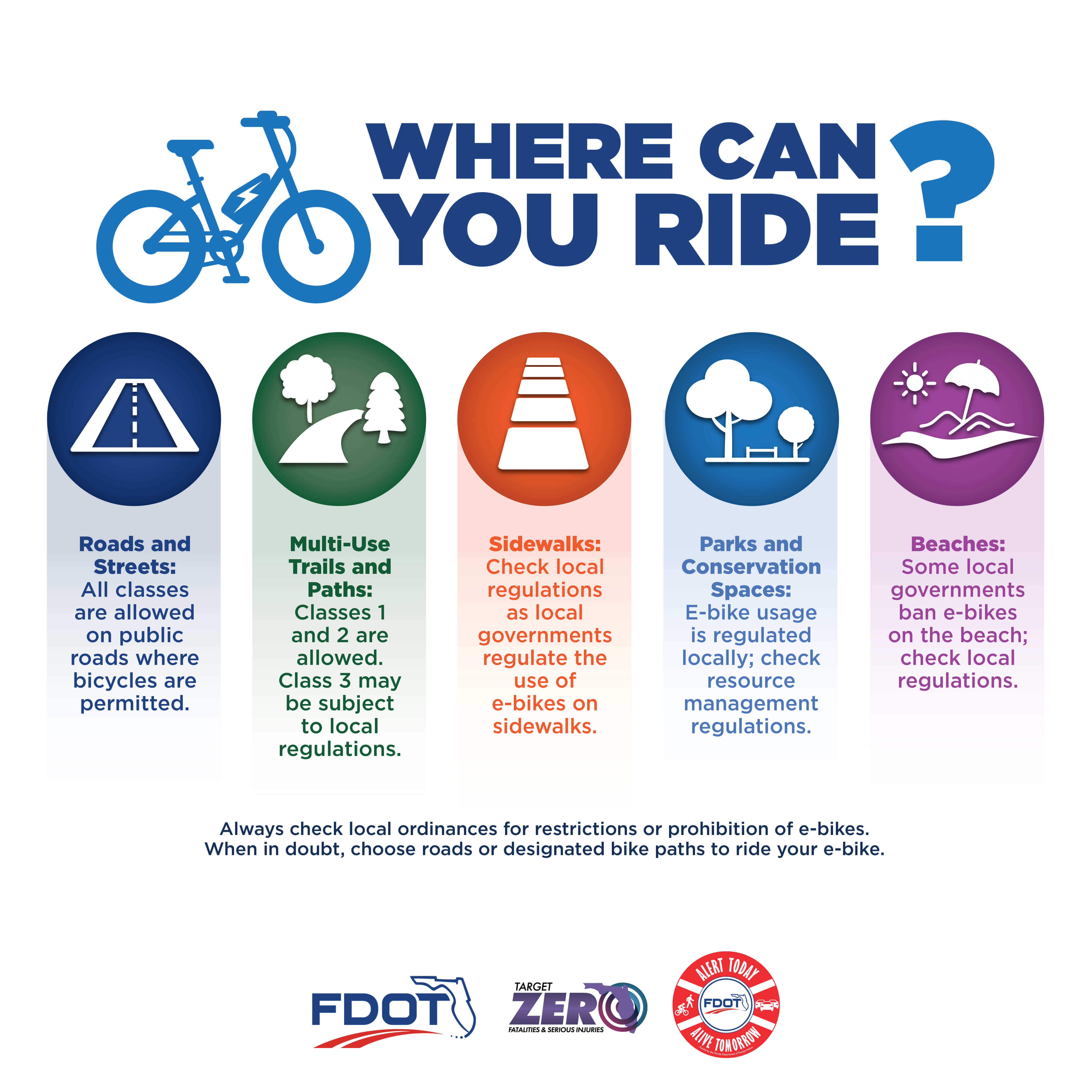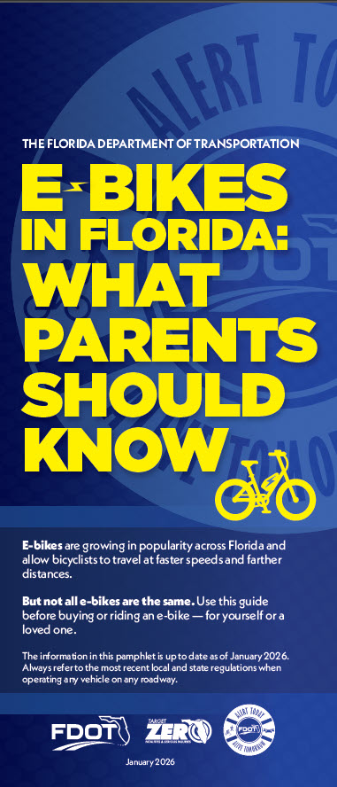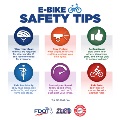 This page provides resources about E-Bike safety, including information on laws surrounding e-bikes, what to look for when purchasing, and social media messaging for use online.