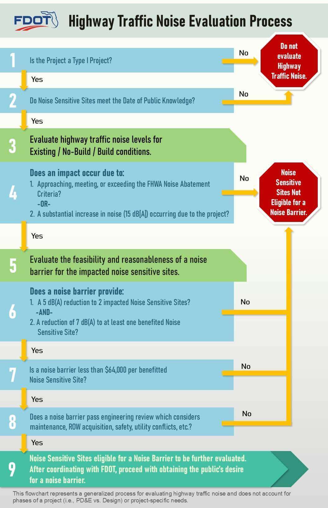 Sources:23 Code of Federal Regulations Part 772 (23 CFR 772), "Procedures for Abatement of Highway Traffic Noise and Construction Noise", Federal Register, Vol. 75, No. 133, Tuesday, July 13, 2010; pages 39834‐39839.FDOT, "Highway Traffic Noise", Part 2, Chapter 18. Project Development and Environment Manual, FDOT, Tallahassee, July 1, 2023.