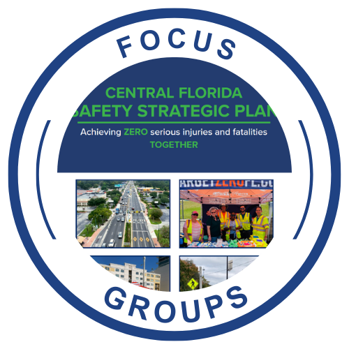 The Central Florida Safety Focus Groups are comprised of 18 volunteer members that assist FDOT District 5 in advancing key action steps from the Central Florida Safety Strategic Plan (CFSSP). The Focus Group teams meet monthly to discuss the CFSSP action steps and seek opportunities to help the region “Get to Zero”.