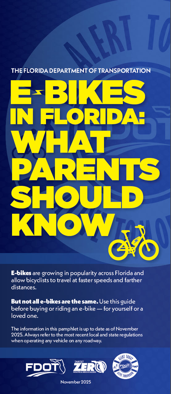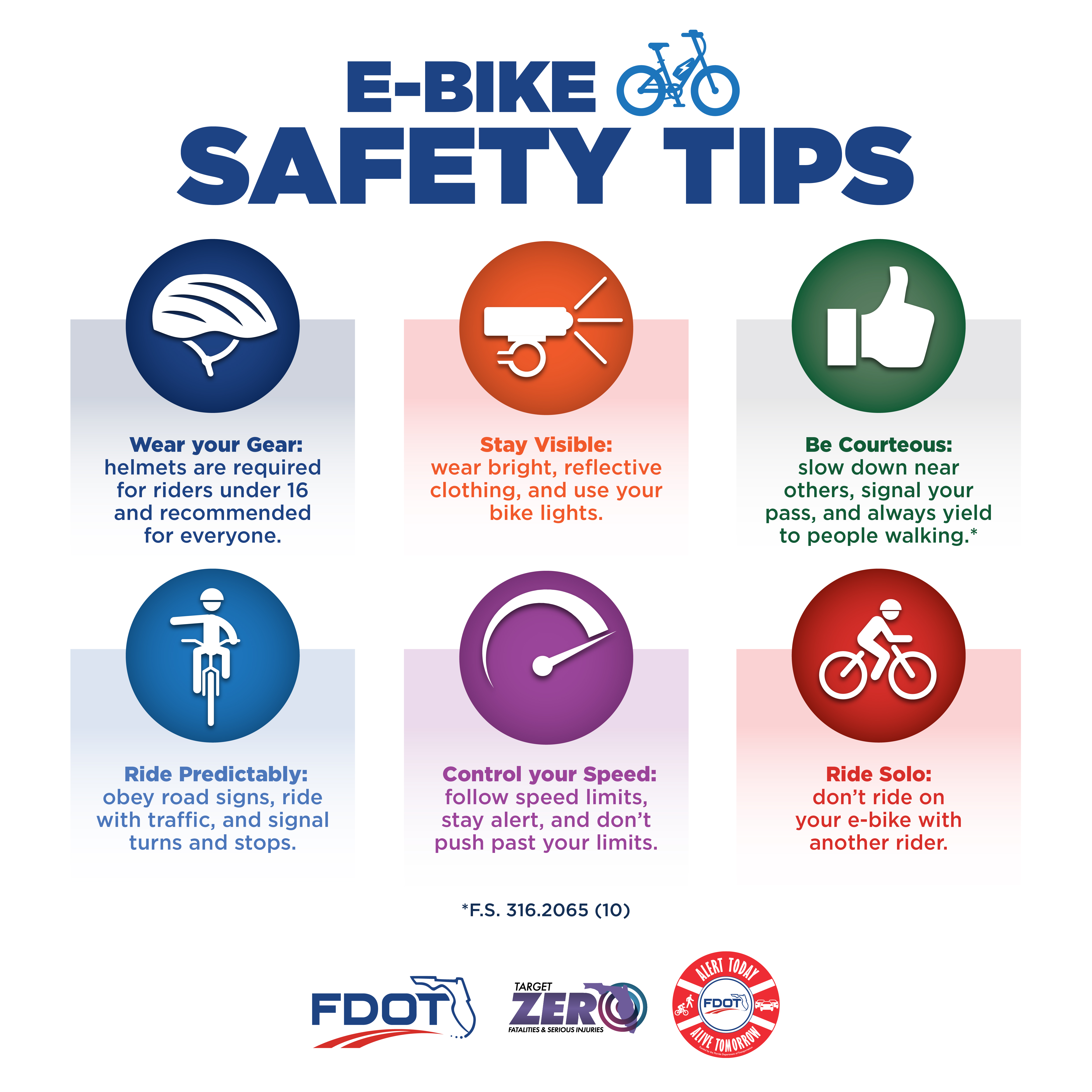 This page provides resources about E-Bike safety, including information on laws surrounding e-bikes, what to look for when purchasing, and social media messaging for use online.