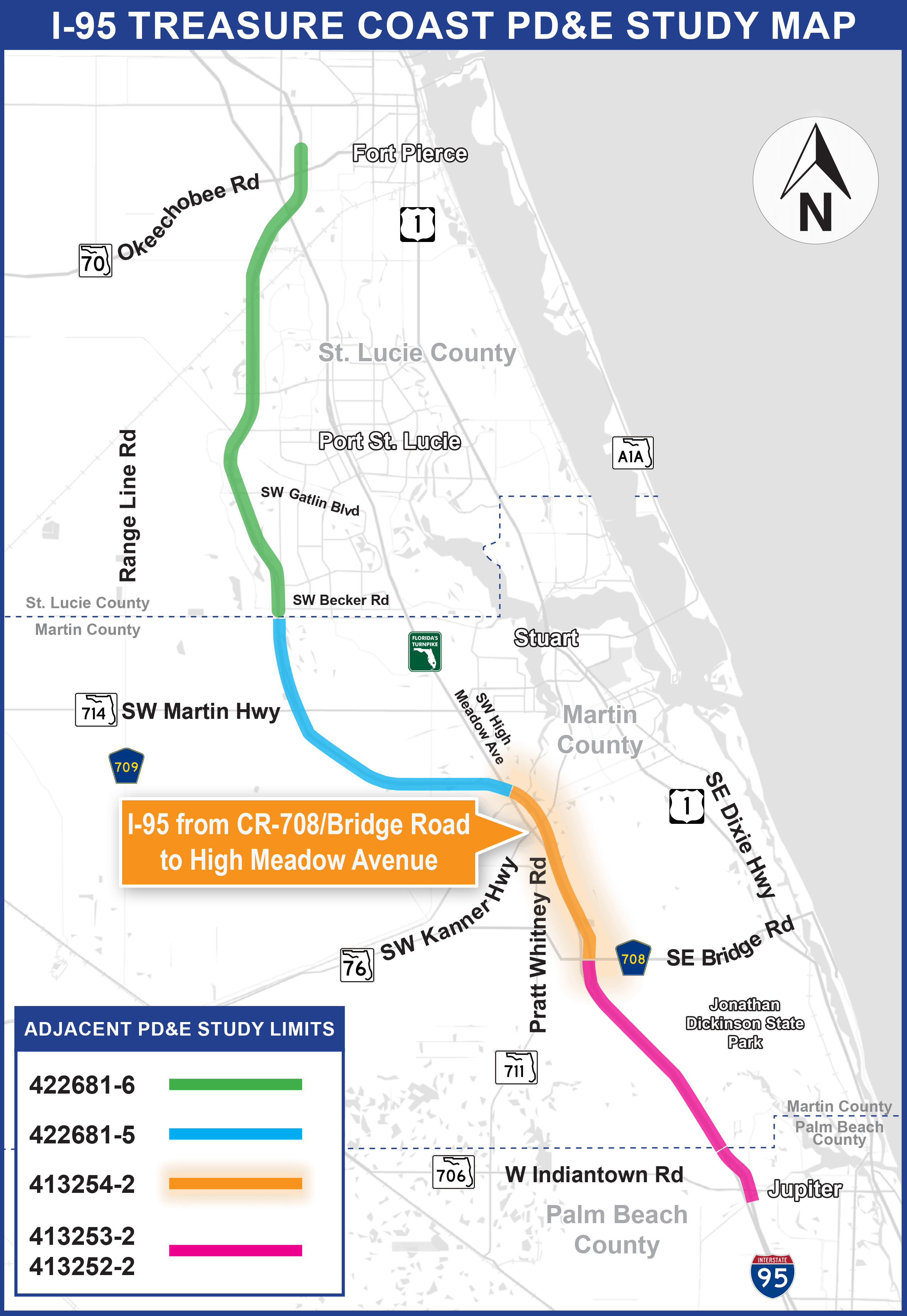 - The other PD&E studies shown in the map below can be found on the Treasure Coast PD&E Study website