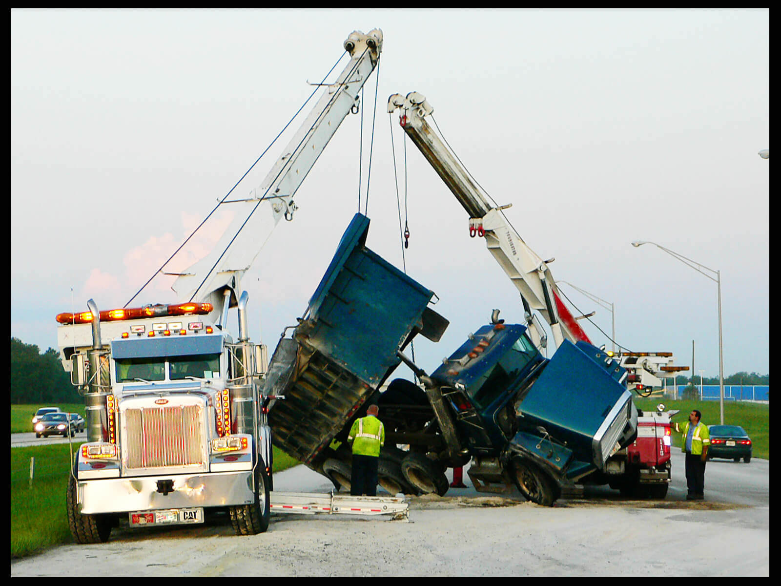 Many times during major commercial vehicle crashes, trailers loaded with cargo are damaged and spill their loads onto the highway or adjacent areas. The RISC contract requires the vendor to have specified extra equipment on hand or available 24 hours a day/7 days a week to respond to the these major incidents. The towing company can receive an extra incentive for the staging and/or use of this extra equipment in the incident clearance process.